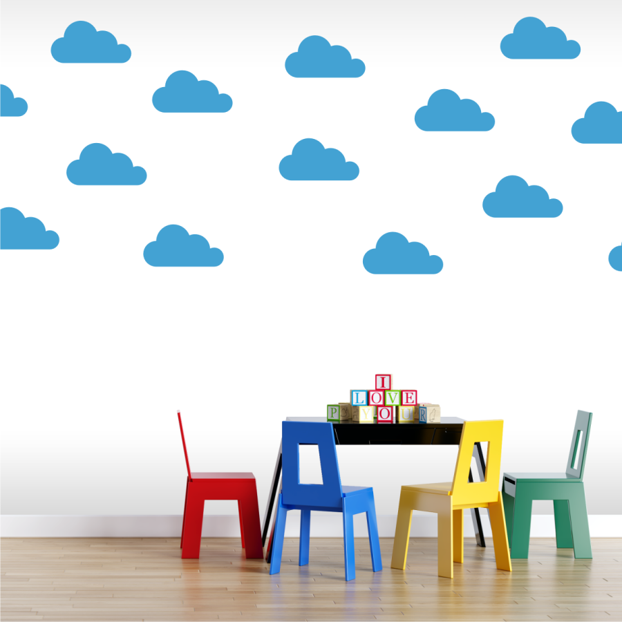 Opis zdjęcia: Naklejki na ścianę CHMURKI - Zestaw, kolor błękitny